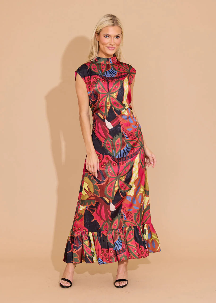 Say hello to our gorgeous Estelle dress! This form-fitting and classic, maxi style frock with cap sleeves and ruffle details will be the perfect addition to your fall closet.