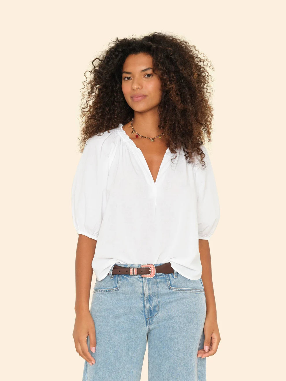 The Jules Top is your new go-to for effortless style. Made with a lightweight cotton poplin, its lived-in look adds a touch of casual charm, while the playful ruffle neckline brings a flirty twist to any outfit. Perfect for days when you want to keep it light and lively!