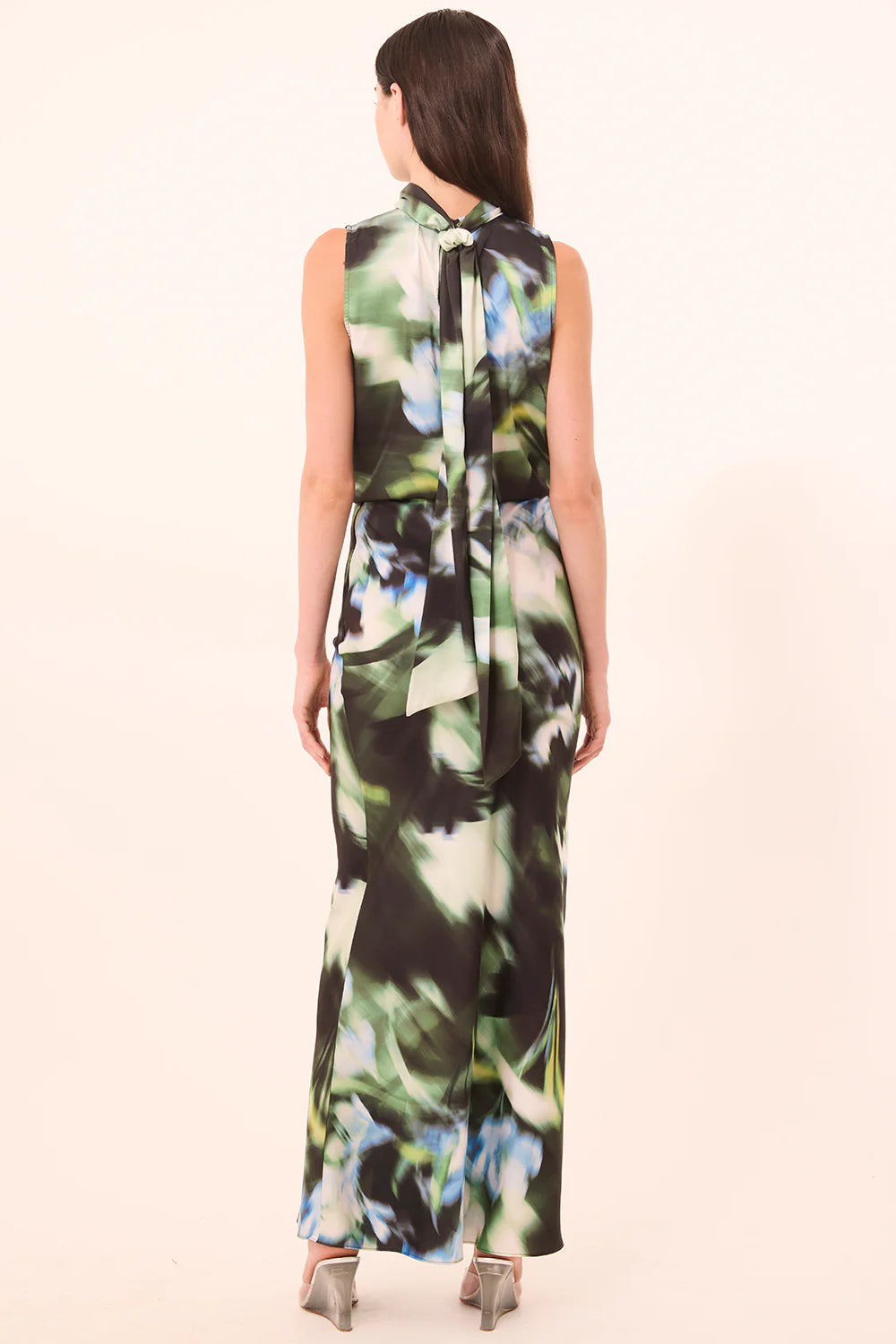 The sleeveless Luka top is an easy high-neck silhouette cut from a stunning blurred Casablanca lily print satin. This best-selling top features a self-tie at the neckline and can be paired with everything from the coordinating Sierra skirt to wide leg trousers.