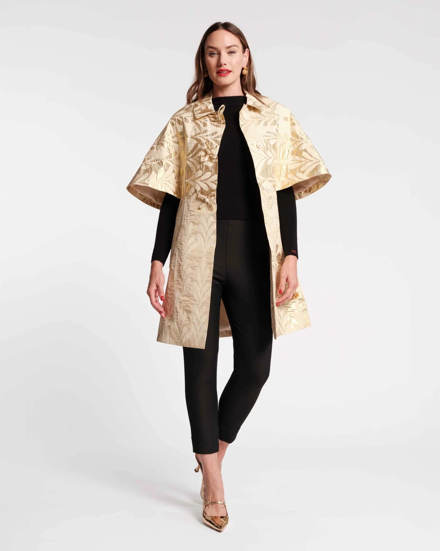 Roll out the red carpet, the Marvelous Jacket is back to make its dazzling arrival! The striking silhouette was a best-seller last year, and we've brought it back in a shimmering gold lurex finished with charming bows and perfectly tailored capelet sleeves. The topper you need for all your upcoming holiday engagements.