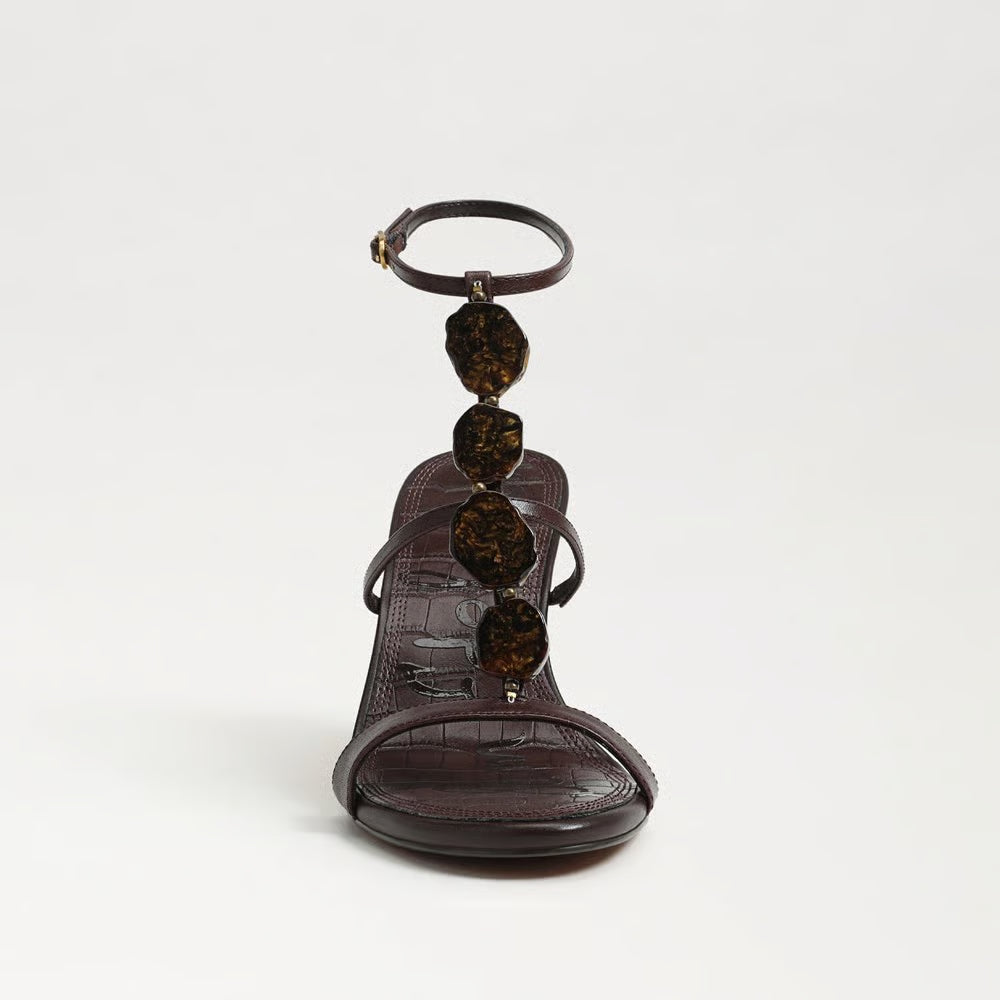 Effortlessly chic, the Massey Ankle Strap Dress Sandal brings a modern twist to classic summer style. A daring take on natural glamour, this strappy wedge sandal features smooth leather and oversized stone accents for a bold, organic touch. Set on a sculptural 3.5-inch wedge heel, it adds height and polish to any warm-weather look.