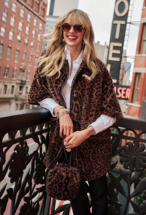 The Nico Poncho in faux fur is the real deal. This bestseller is making a comeback for a new season in our new super-soft jaguar faux fur. Let your wild side out with this chic layer for a cozy statement. Combining feminine glam with unbeatable comfort, your wardrobe is incomplete without Nico.