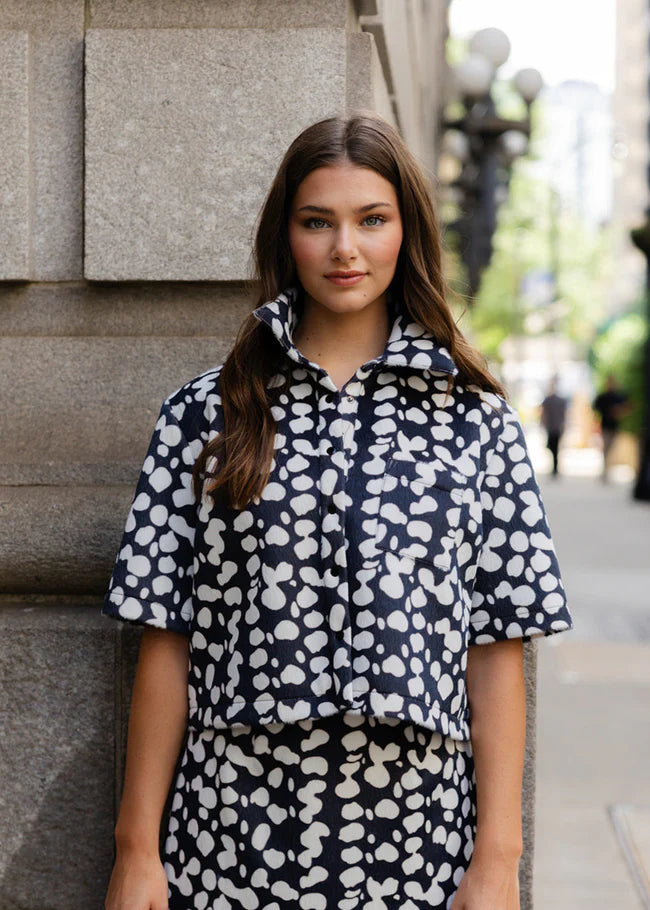 The Remi Top is here in the Stingray print! Offering a cropped, relaxed fit with a flattering button down closure and front pocket. Pair with a skirt or throw on some jeans for the perfect head to toe look!